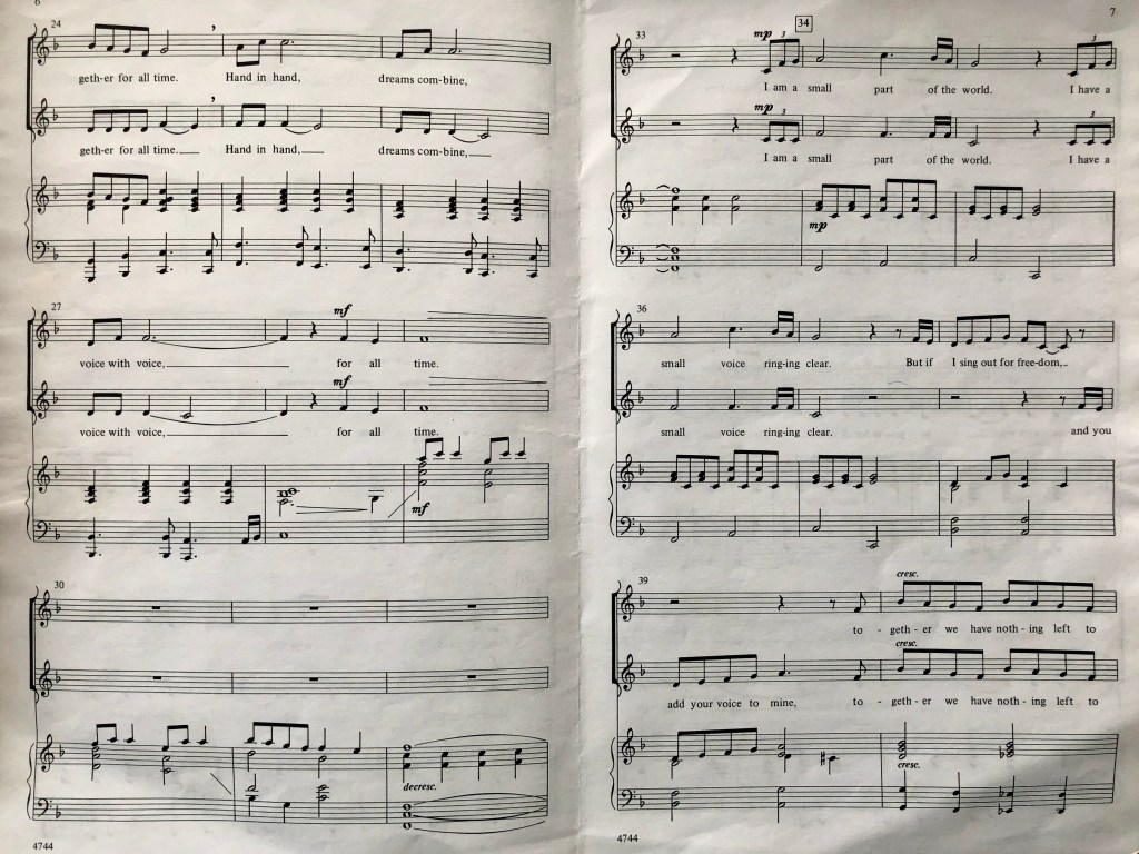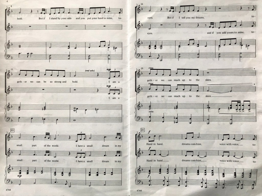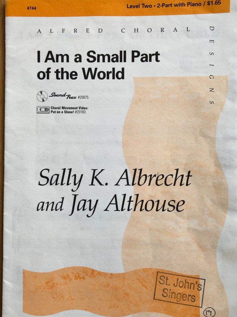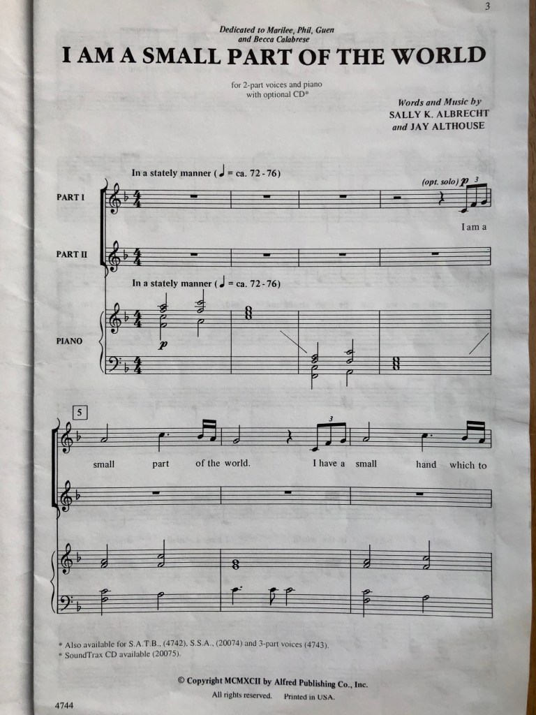 After some helpful comments from John, he suggested we find our own material to practise. I was drawn to a piece that we were given in the CPS conducting class, I am a Small Part of the World (click images to enlarge):